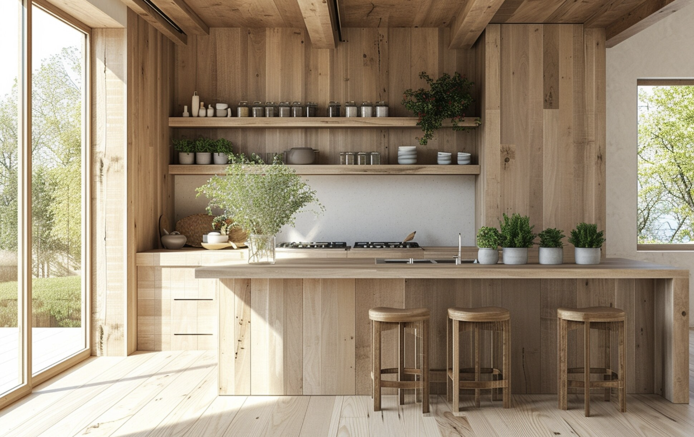Комбинация 3: Натуральное дерево + Белый • Теплое, уютное сочетание • Подходит для скандинавского и классического стилей • Визуально увеличивает пространство • Популярно в 2026 году